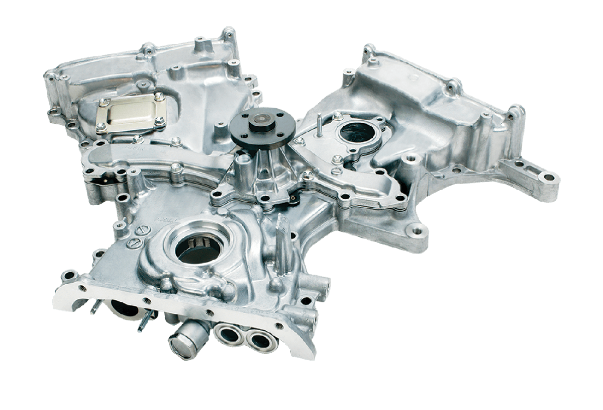 AISIN Timing Chain Covers are designed to protect the timing chain and gears, maintaining the engine's timing and performance, while also providing a sleek and durable design that enhances the engine's appearance.
