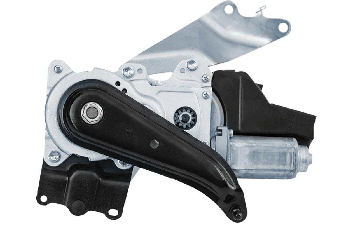 These AISIN actuators are typically found in vehicles with power lift gates or power tailgates, and are responsible for opening and closing the back door at the push of a button. They are connected to the power back door's latch mechanism and use a series of gears to provide the mechanical force required to open and close the door.