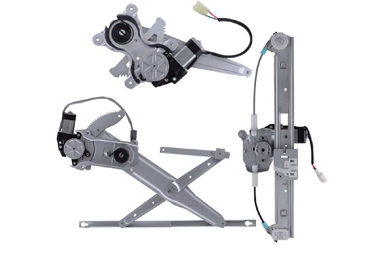 AISIN Window Regulator Assemblies and Motors are mechanical and electrical components that work together to raise and lower the power windows in a vehicle. The window regulator assembly is the mechanical component that consists of gears, tracks and other parts that move the window up and down. The electric motor is the component that provides the power to move the window. Together, they form the power window system that allows the driver and passengers to easily raise and lower the windows with the push of a button.