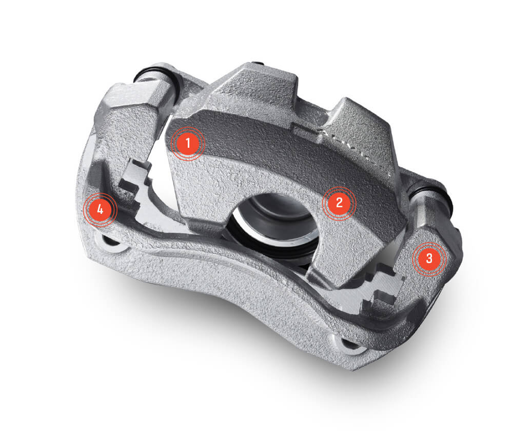 Our ultra-premium complete caliper assemblies are designed to work in partnership with our application-specific friction and rotors. All of our calipers are brand new, not rebuilt, and are made from both iron and aluminum alloy. Meticulous construction, using OE-quality precision machining, ensures excellent NVH performance, which reduces vibration-related noise during braking.